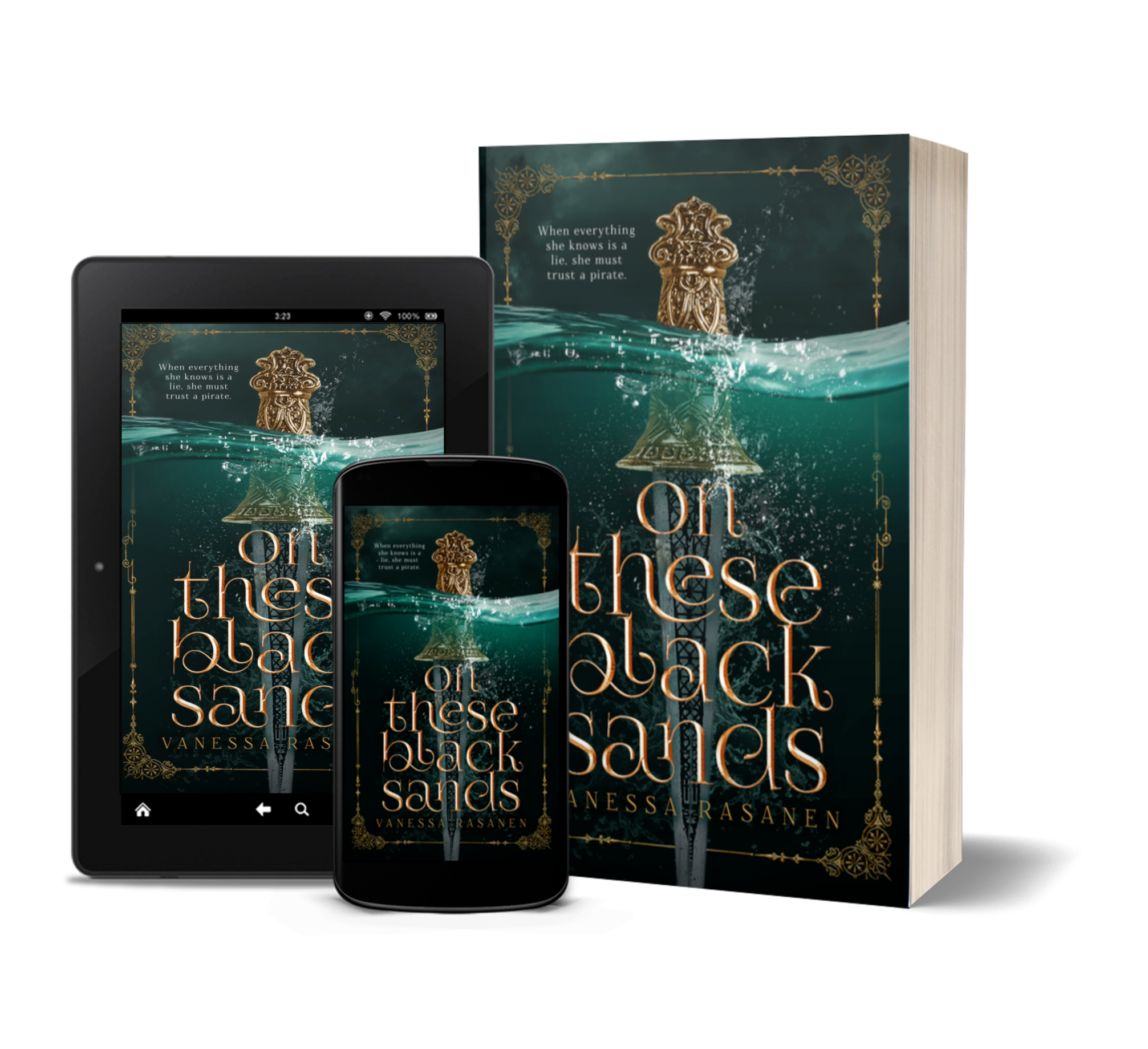 In a world of lies and betrayal, trust can be dangerous and alliances can turn deadly.Declan’s years as captain have earned him both a ruthless reputation and a slew of enemies. Add in the Council which lords over the pirates and the painful past that haunts him, and he’d do anything to be free of these seas–even search for a legendary dagger with the power to grant victory to the one who wields it.When a chance stop back home brings him the information he needs to finally find the blade, nothing will stop him from claiming it for himself.Until an irritating Council heir stows away on his ship…Despite his crew’s pleas, Declan can’t shake his protective nature and agrees to see her safely to the next port. But when she turns out to be the key to his quest, he’ll have to set aside his hatred for her and her family… or throw away his one chance at freedom.On These Black Sands is the first book in a romantic fantasy trilogy, pulling you into a unique world of heart-rending betrayal, deadly legends, and swoon-worthy love. This pirate adventure offers political intrigue with a side of slow-burn romance between a reluctant hero and the woman who could save him…if she doesn’t wreck him first.