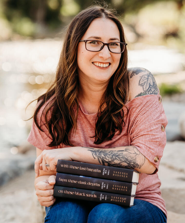 Vanessa Rasanen is a former engineer turned fantasy romance author of emotionally charged stories full of love, adventure, and a bit of spice. When she's not writing swoony tension and broody good guys, she and her pilot husband can be found explaining to their four extroverted children why they have to live out in the middle of nowhere. Vanessa is a morning person who lives on coffee, potatoes, and gin (not at the same time) and could watch The Mummy and New Girl on repeat.